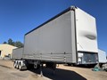 2005 Krueger ST3-38 retractable triaxle skeletal trailer fitted with 3 way container pins, bolsters, air bag suspension on 5 spoke spider wheels, removable king pin, plastic mudguards, 11R22.5 tyres and lading legs, Available Ex-Tomago NSW 2322.